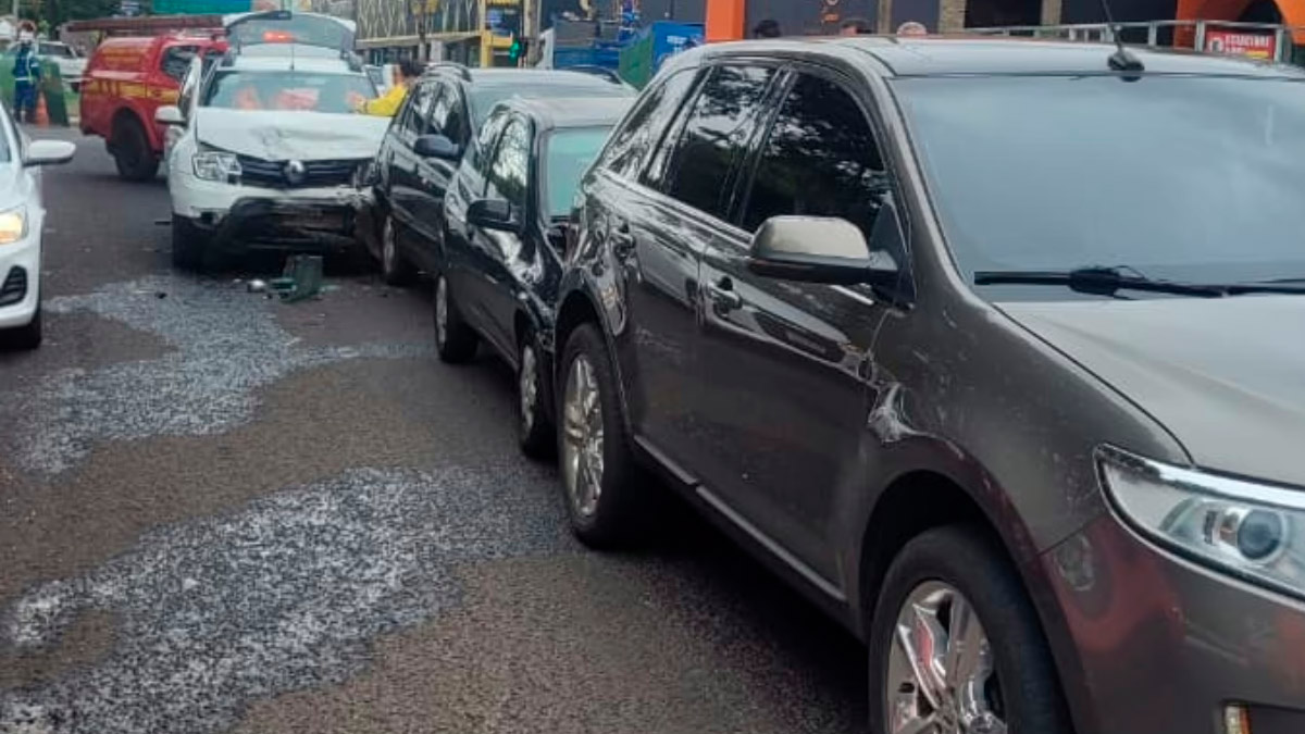 De acordo com o Corpo de Bombeiros, o motorista do último veículo envolvido colidiu com os carros que estavam parados no semáforo, empurrando todos à frente. Testemunhas relataram que ele não conseguiu frear a tempo, o que resultou no engavetamento. Há suspeitas de que ele tenha passado mal. “Ele estava confuso e apresentava déficit neurológico”, afirmou o tenente dos Bombeiros.