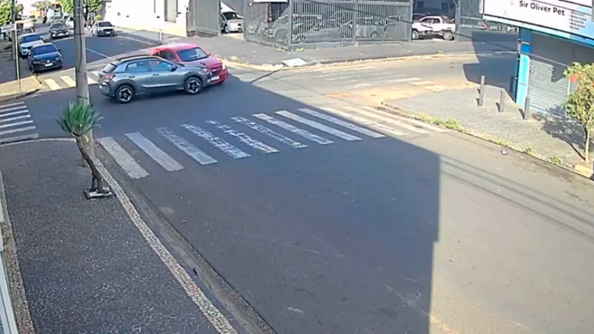 Um acidente ocorreu entre a rua São Paulo e a avenida Brasil, no bairro Brasil, em Uberlândia, por volta das 8h desta sexta-feira (19). De acordo com a Polícia Militar (PM), uma motorista ficou levemente ferida, mas sem ferimentos graves. A batida envolveu dois carros e foi registrada por câmeras de monitoramento, que mostraram um dos veículos desrespeitando a sinalização de pare.