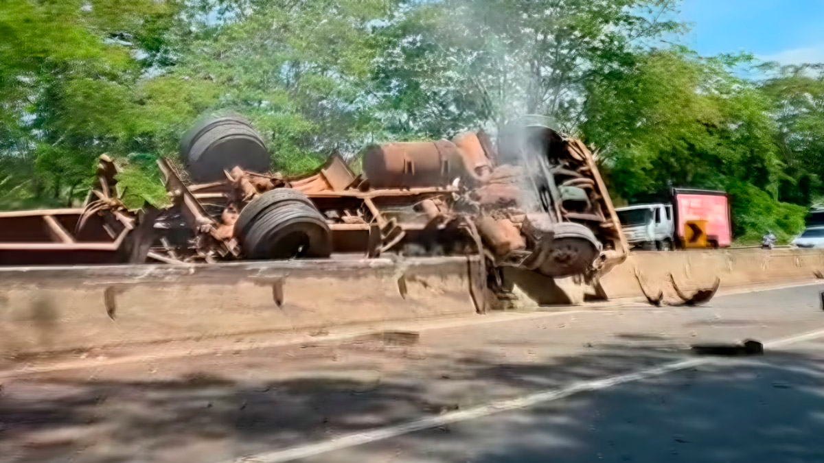 Uma carreta carregada de fertilizante tombou por volta das 10h20 desta quarta-feira (5) no km 55 da BR-050, entre Uberlândia e Araguari. Como resultado, a pista no sentido Araguari–Uberlândia está totalmente interditada, e o tráfego foi desviado pelo acostamento. No sentido oposto, uma das faixas foi bloqueada para limpeza, enquanto o trânsito flui pelas outras duas. Segundo a concessionária Ecovias Minas Gerais, felizmente, ninguém ficou ferido.