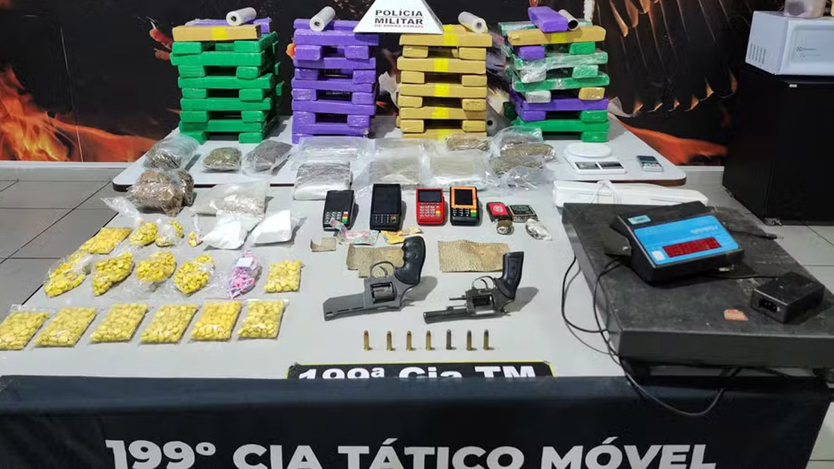 A companheira do suspeito, de 32 anos, também estava presente no imóvel. Dentro da casa, os agentes encontraram não apenas drogas, mas também materiais relacionados ao tráfico, armamentos e munições.