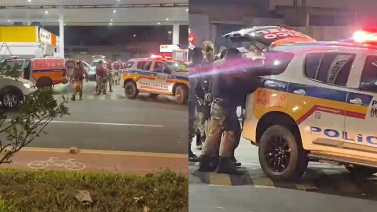 Além disso, imagens veiculadas nas redes sociais mostram o veículo suspeito e os feridos caídos ao chão, enquanto policiais militares prestam socorro e colocam as vítimas em uma das viaturas.