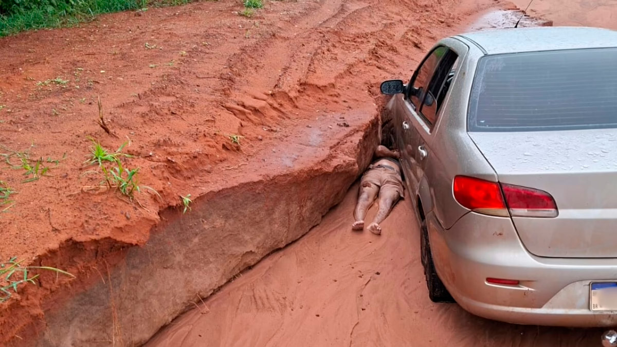Segundo informações da ocorrência, o veículo caiu em um buraco e atolou. Ao descer para tentar liberar o automóvel, a estrutura do carro cedeu no barro instável, imobilizando o motorista. Sem conseguir se soltar ou pedir ajuda, o homem permaneceu sob o veículo durante toda a noite, enfrentando a exposição ao tempo e o peso do automóvel.