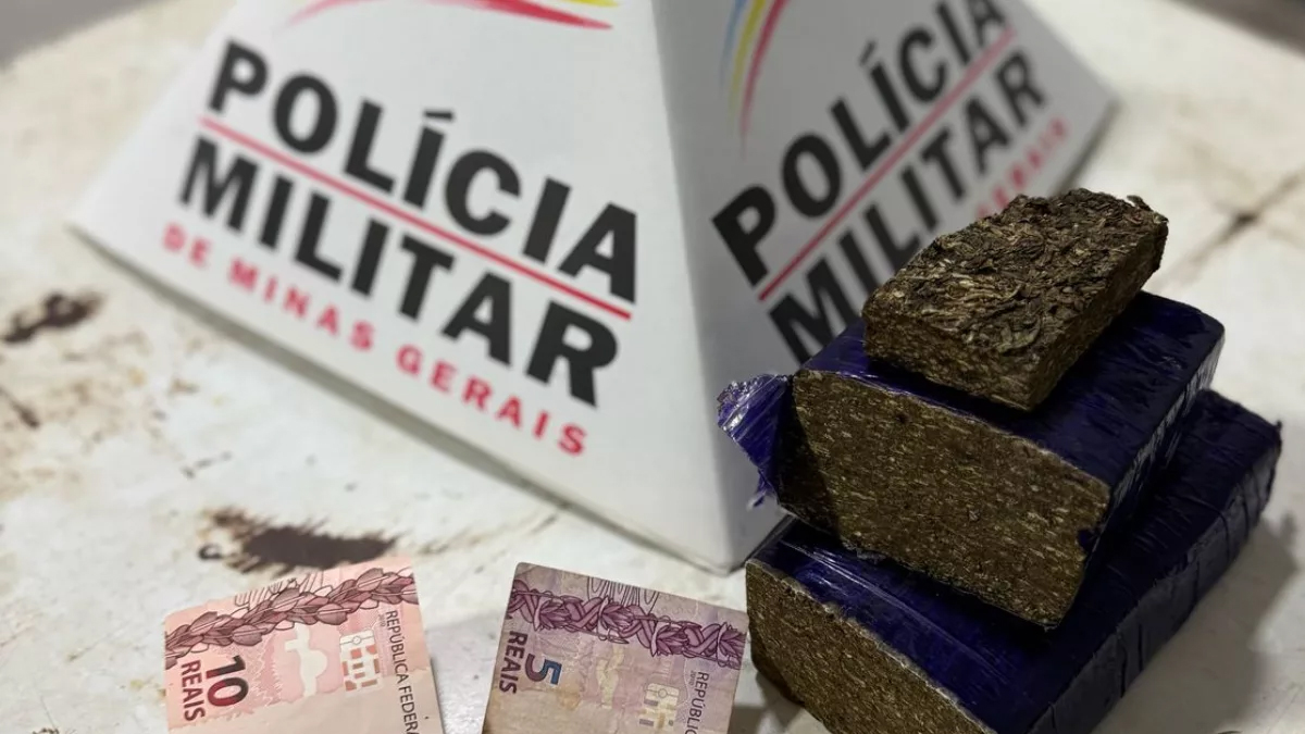 Durante a revista, os policiais localizaram um tablete de maconha próximo ao suspeito. Questionado sobre a substância, ele acabou confessando que havia tentado descartá-la ao notar a presença dos militares. Em seguida, os agentes iniciaram buscas na área e encontraram mais duas barras da mesma droga, reforçando as evidências do envolvimento do jovem com o tráfico.