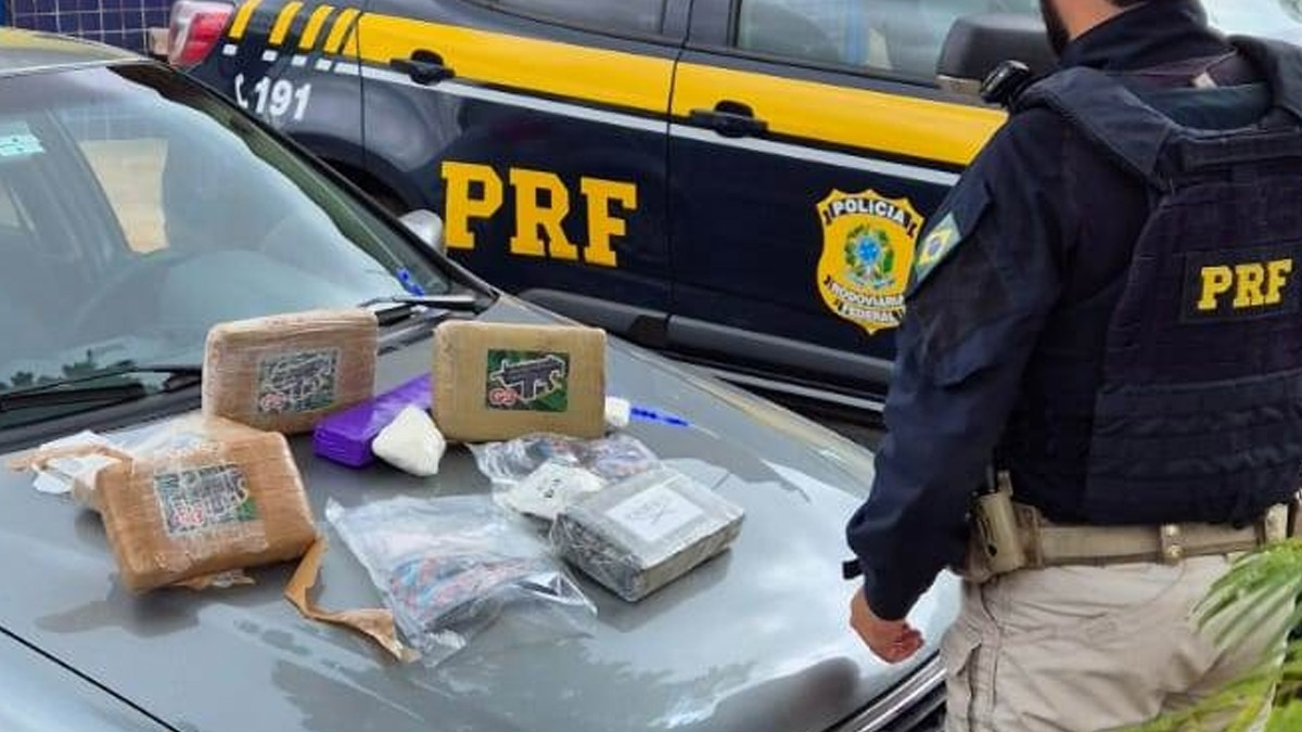 Em uma busca minuciosa, os policiais localizaram um compartimento oculto no painel, onde encontraram uma variedade impressionante de entorpecentes: cinco barras de maconha de alta qualidade, um quilo de cloridrato de cocaína, oito invólucros de haxixe marroquino, quatro de haxixe tipo “Ice” e dois de “Shatter”, uma droga cujo grama pode alcançar R$500,00.