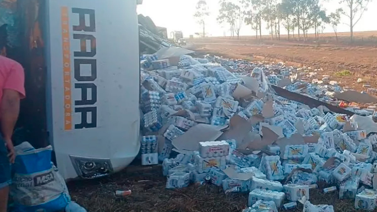 Rodotrem de cervejas tomba na MGC-497, em Iturama; felizmente, sem vítimas